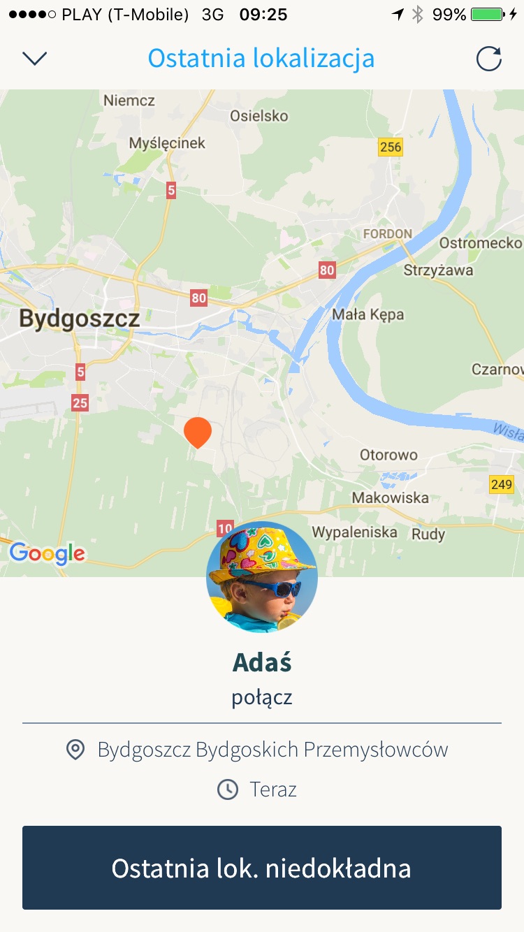 If your child move away more than 50 m, the application will trigger an alarm, also in sleep mode. Thanks to GPS you will see last known child position marked on map