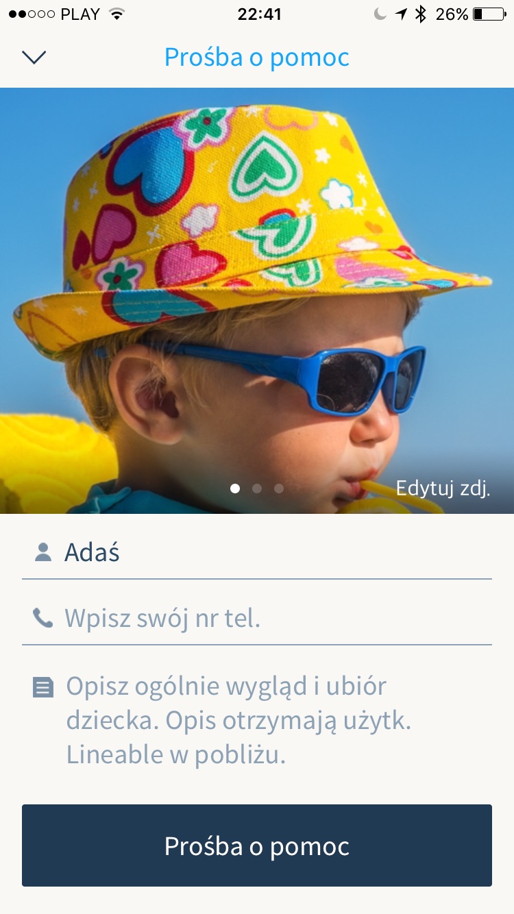 We add our wristband or wristbands to the application, by filling up information about our child. The application will trigger the alarm after the child or children cross the range (ca. 50 m), also in sleep mode. In every moment we are able to check the current or last known child GPS position at the map. In case of losing child we only need to report an alert, then other application users can notify us when lost child will be in their range. It is possible to add one child/wristband to multiple carers, that will be able to monitor the GPS position with use of bluetooth connection establisher by one of them.